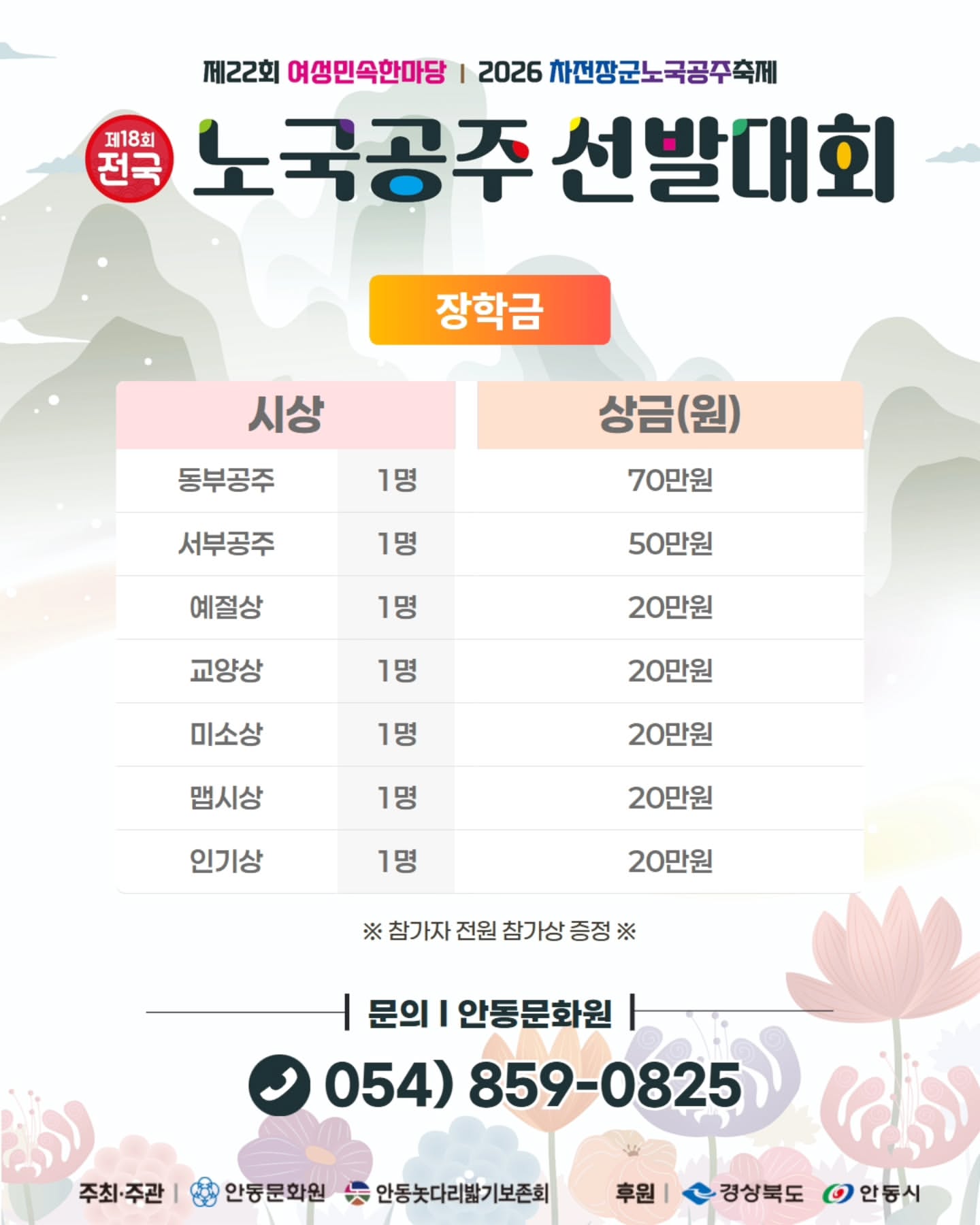 예절상 / 교양상 / 미소상 / 맵시상 / 인기상 각 20만원